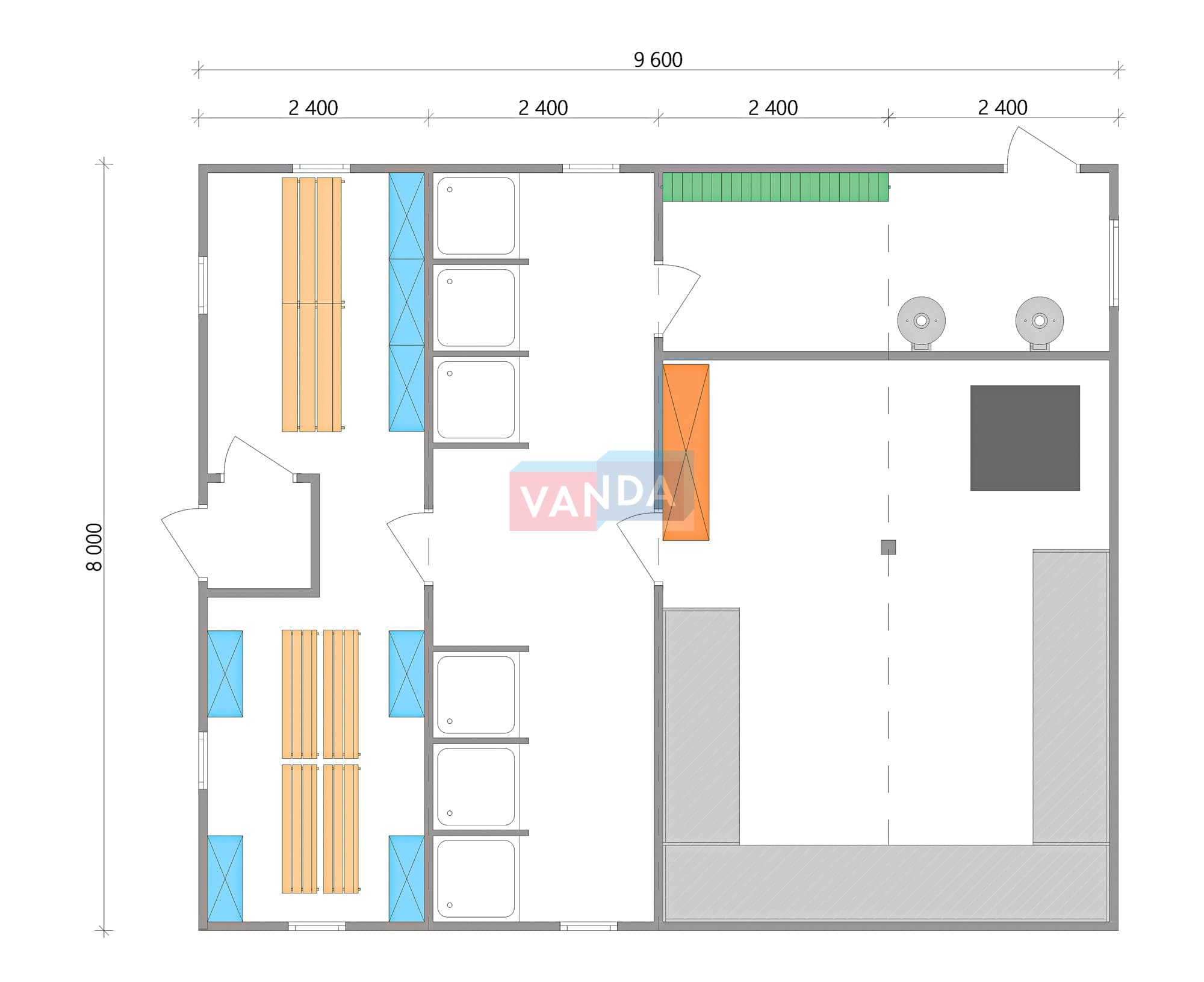 Проект вахтового посёлка 14.0х57,6 14x57.6 806.4 OSB 9 мм. Оцинкованный профлист 20 700 000 р. Уточняйте у менеджера
