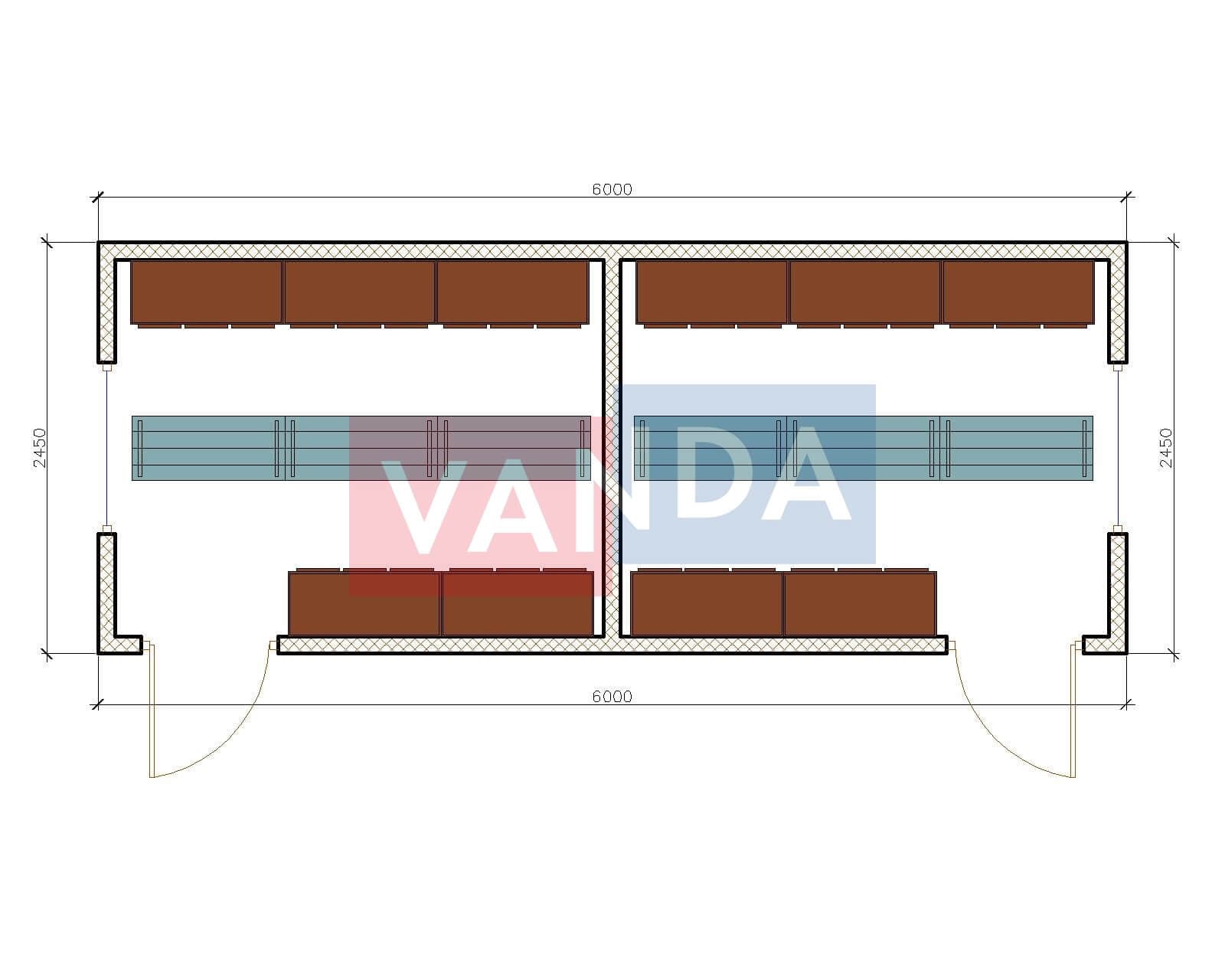 Бытовка металлическая двухкомнатная 6х2,45 5.85x2.4 14.04 Вагонка ПВХ оцинкованный профлист 114 000 р. Уточняйте у менеджера